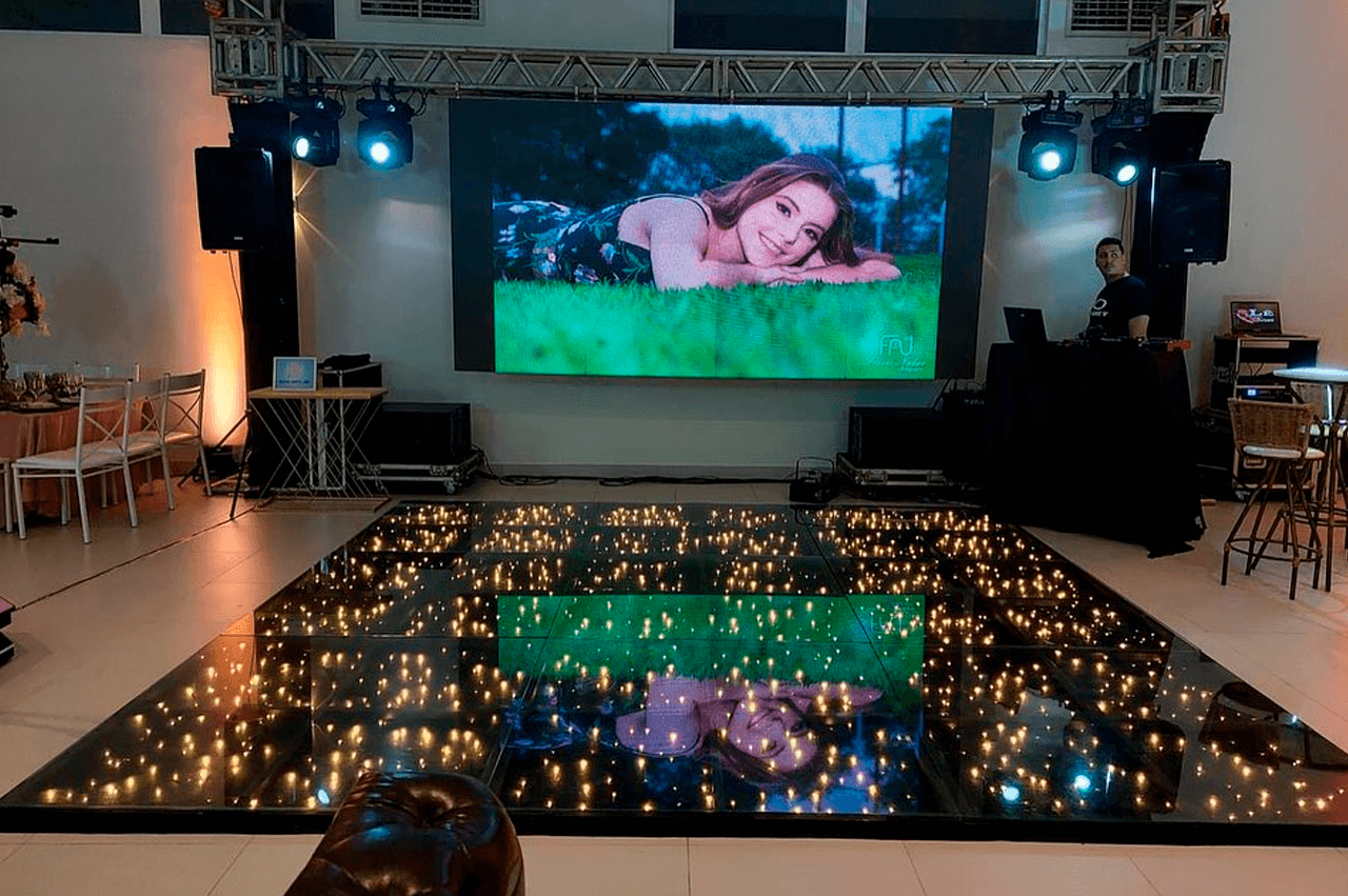 Trabalhamos com tecnologia de ponta em som, iluminação e painéis de LED para garantir qualidade máxima no seu evento.